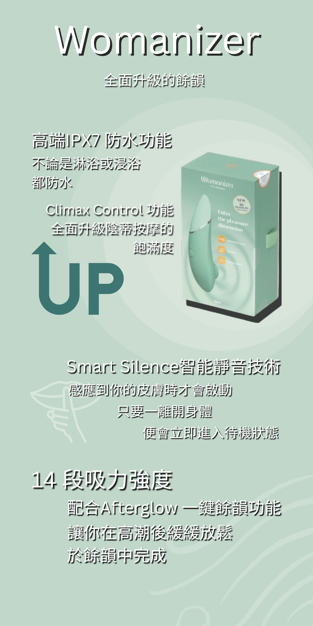 Womanizer Next 擁有 14 段震動等級,結合自動模式與 3D 壓力氣流,以最大化敏感度。